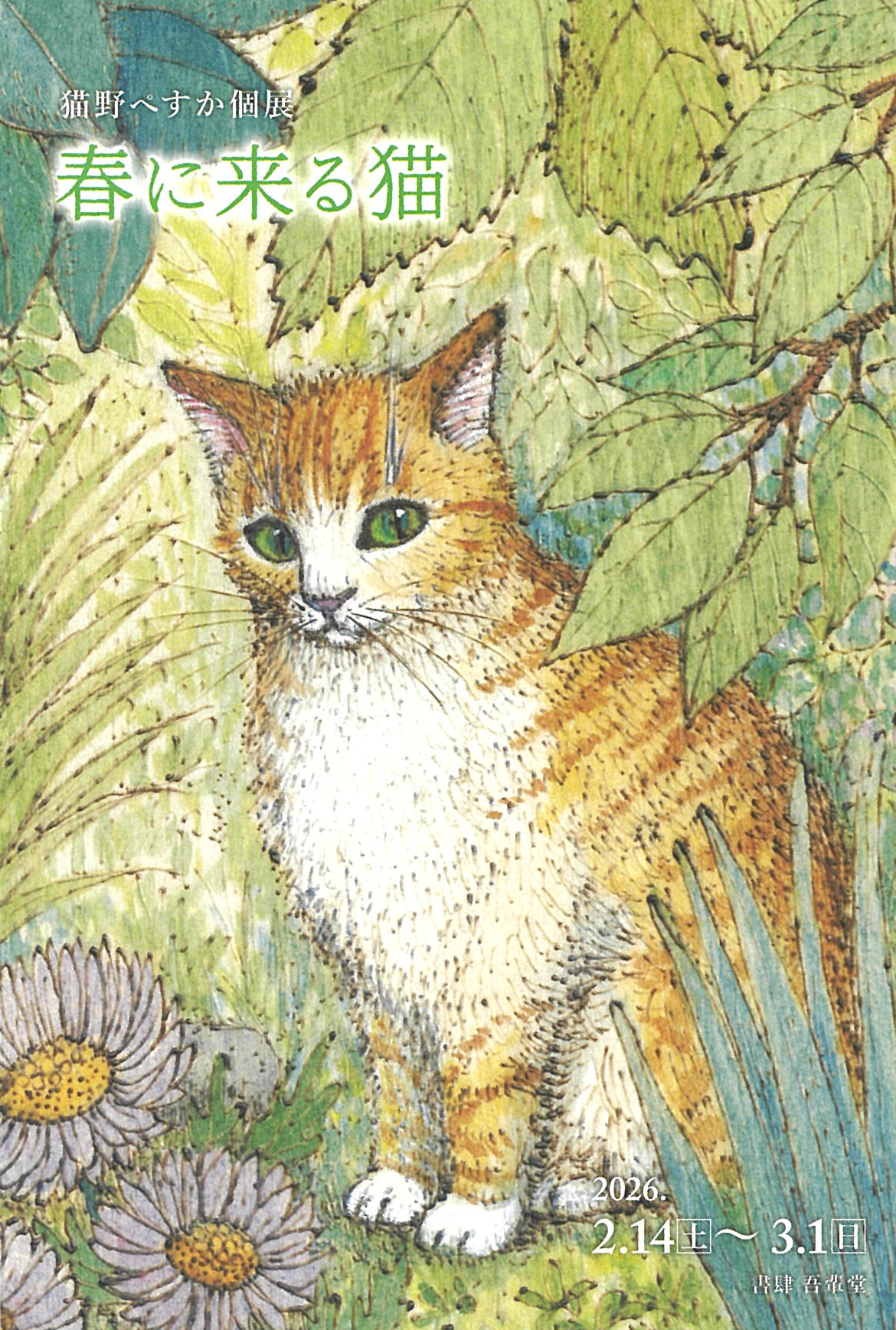 ウッドバーニングとペイントを組み合わせて作品を制作する 猫野ぺすかさんの個展です。 「春に来る猫」をテーマに、猫を描いた作品が展示されます。